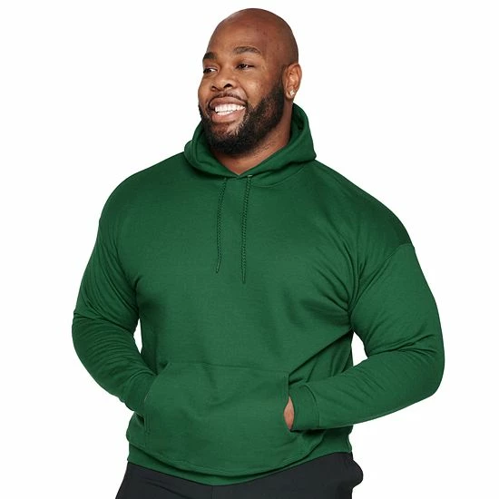 Environmentally-friendly fashion. This men’s Hanes EcoSmart fleece pullover hoodie includes up to 5 percent of polyester created from recycled bottles.