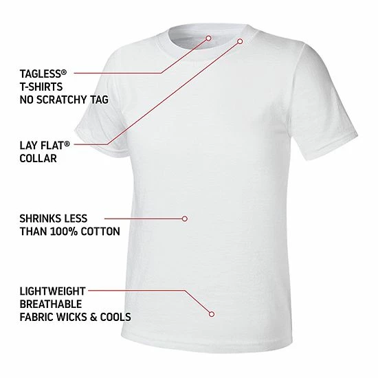 He’ll stay in his comfort zone with these boys’ Hanes tees.