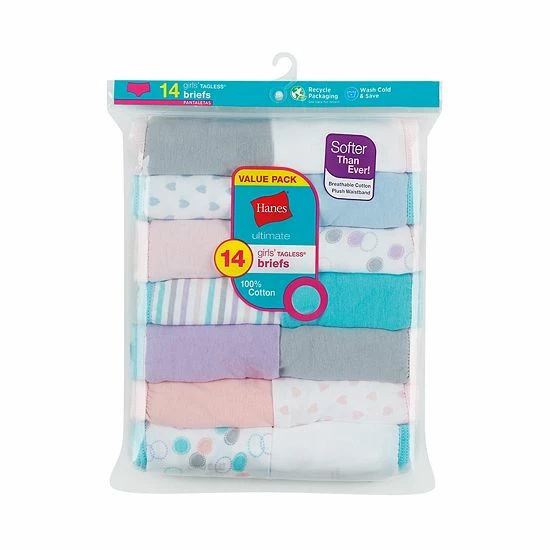 Give her lots of options with this girls’ Hanes 14-pack of briefs.