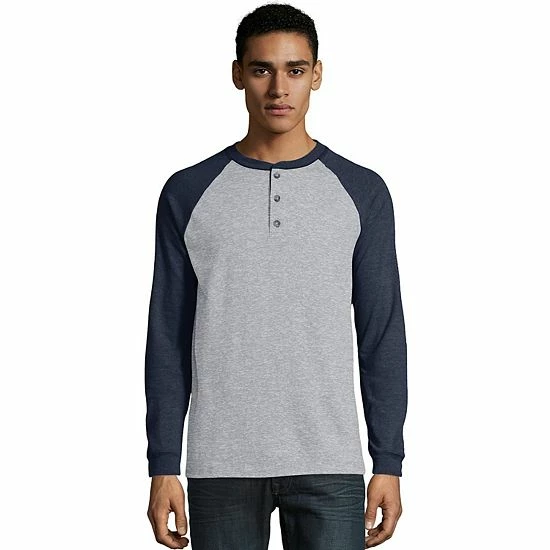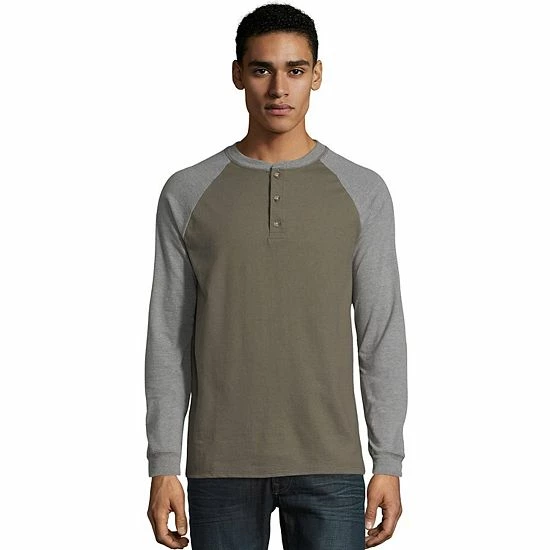 Stay in your comfort zone with this men’s heavyweight raglan henley from Hanes.