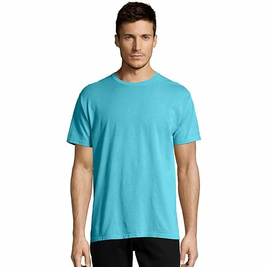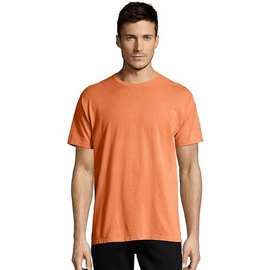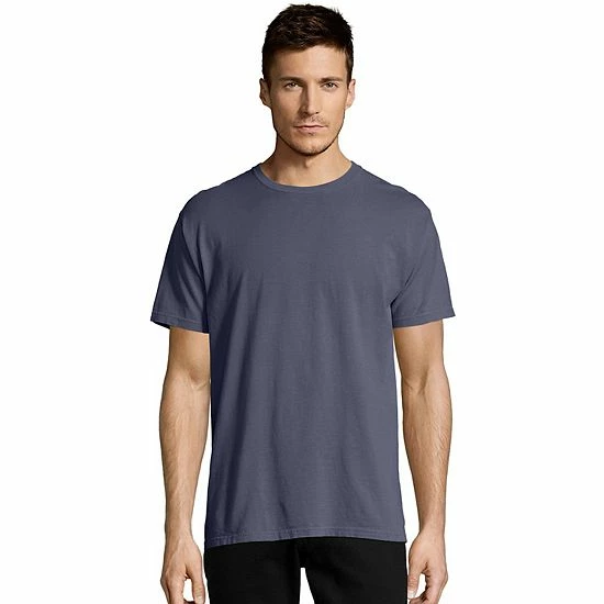 Classic comfort. Thanks to its garment-dyed finish and soft cotton construction, this men’s Hanes crewneck t-shirt keeps you feeling great during day time or sleep time.