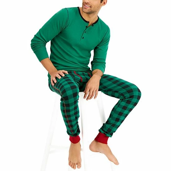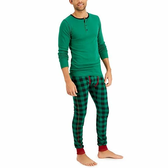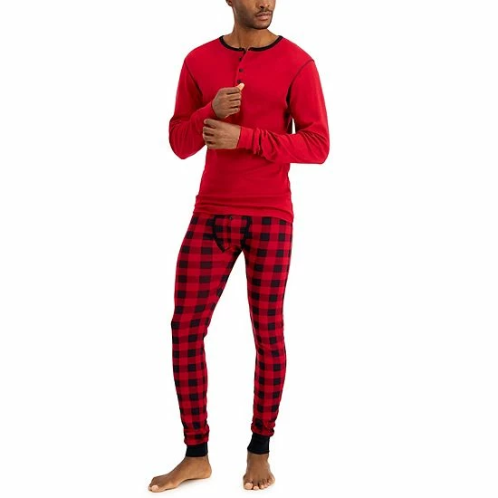 Men’s Hanes Henley & Long John Pants Pajama Set Red