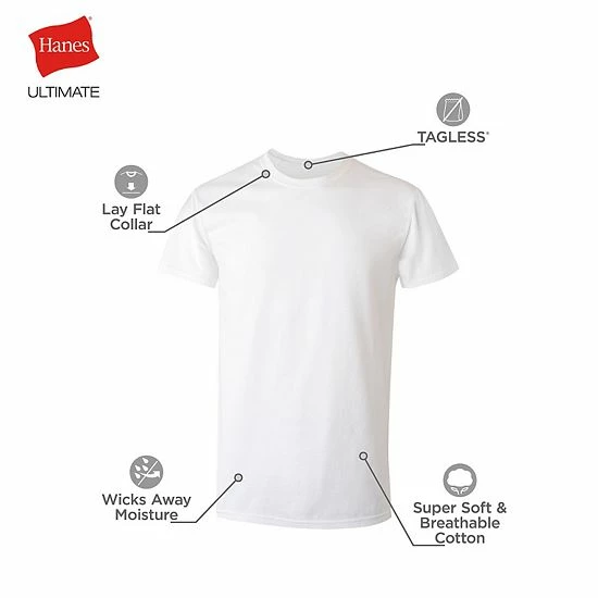 These men’s Hanes Ultimate tees deliver comfort thanks to their tagless design and soft, ringspun cotton construction. Free bonus tee included.