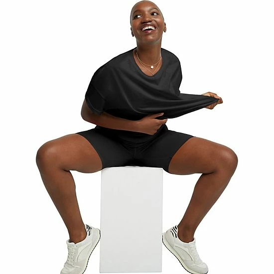 Pairs perfectly with your favorite tees or tunics, these women’s Hanes bike shorts feature a heavier fabric weight to prevent show-through.