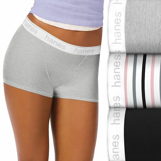 Take comfort with you all day in these women’s Hanes stretchy boxer briefs.